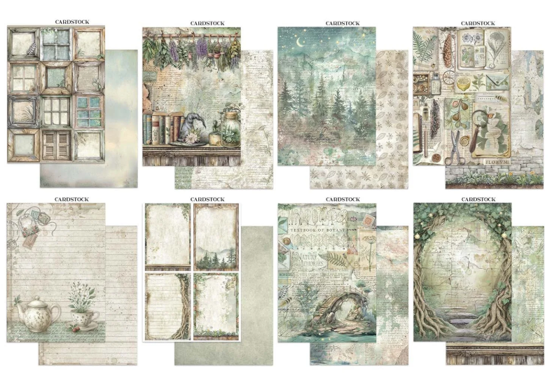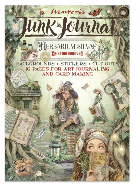 Stamperia Herbarium Silvae, diseñado por Cristina Radovan, revela lo que se esconde tras la naturaleza: su serena belleza, su esencia y la conexión entre todo. Este diario incluye 16 páginas para crear art journaling y tarjetas. En su interior encontrarás 8 hojas de cartulina de doble cara (gr220), 4 páginas de pegatinas (gr120) y 4 páginas de recortes de doble cara (gr220). Cada hoja mide aproximadamente 21,5 x 29,5 cm.