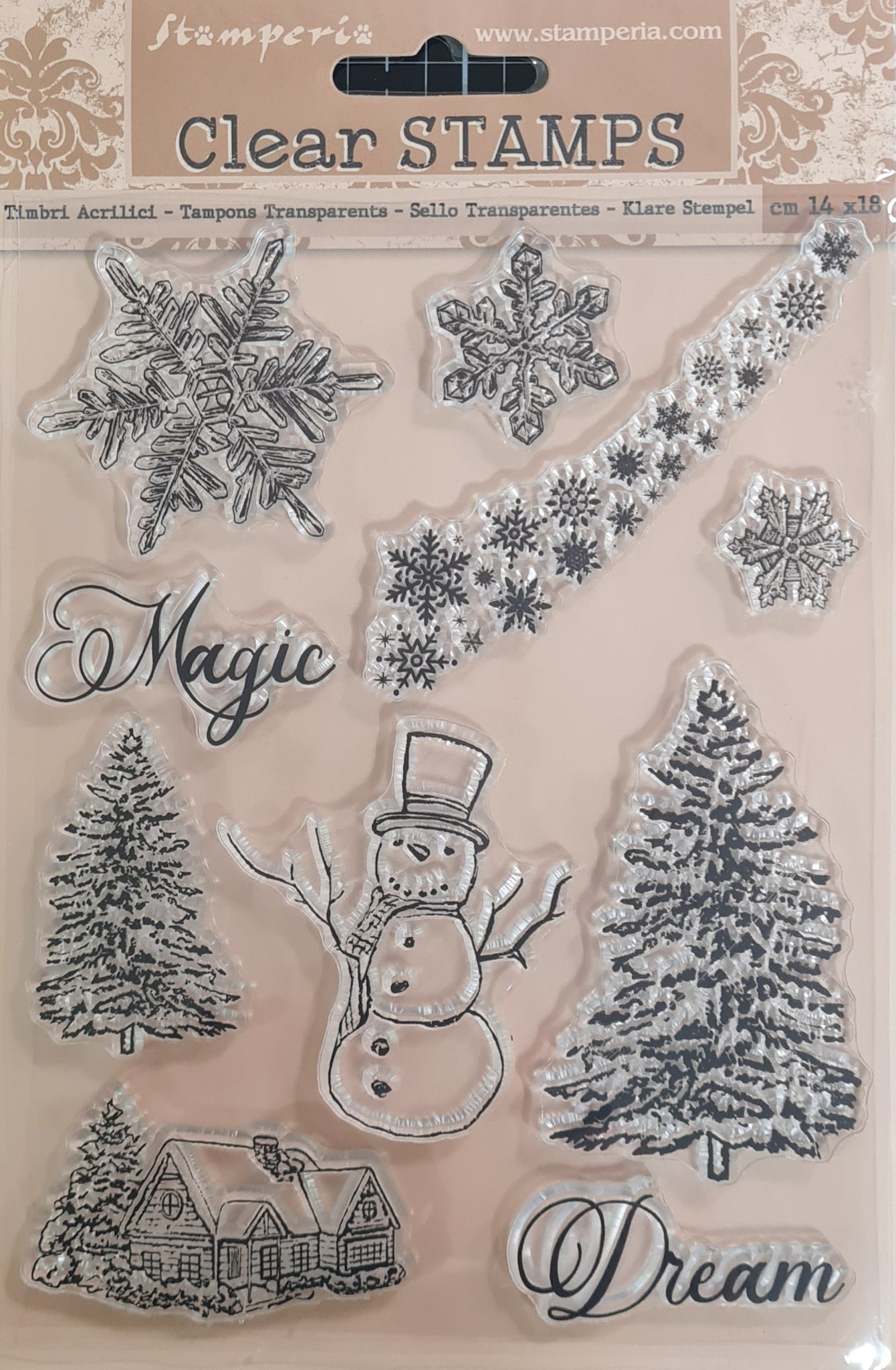 Sello acrílico Home for the Holidays copos de nieve, árbol